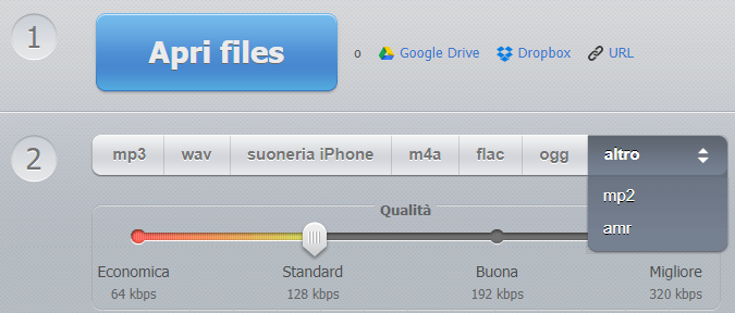 Online Audio Converter è un sito per la conversione di file audio in diversi formati. Consente di estrarre una traccia audio da un file video. L’audio in FLAC puoi caricare dal tuo computer, da un link e anche dai servizi cloud. Il servizio oltre ad essere totalmente gratuito è anche in italiano e questo lo rende nell’utilizzo molto più semplice.