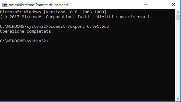 Se non hai ancora eseguito il backup dell’archivio BCD, potrebbe essere una buona idea farlo ora, perché se il file BCD dovesse risultare mancante o danneggiato, Windows non sarà in grado di avviarsi.