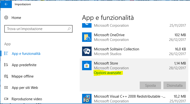 Nel lato destro cerca Microsoft Store e cliccaci sopra.