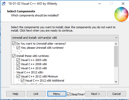 Visto che i problemi che riguardando la mancanza o il malfunzionamento del runtime (file .dll) si riscontrano sempre più frequentemente, ho cercato un programma che ti consente sia di disinstallare e installare le versioni più aggiornate. Sul sito di majorgeeks ho trovato Visual C++ Installer/Uninstaller 18.01.02 che è compatibile con Window 10 / 8 / 7 / Vista / XP.