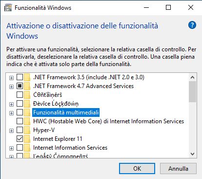 - Nella lista trova Funzionalità multimediali e deseleziona se dovesse essere selezionato